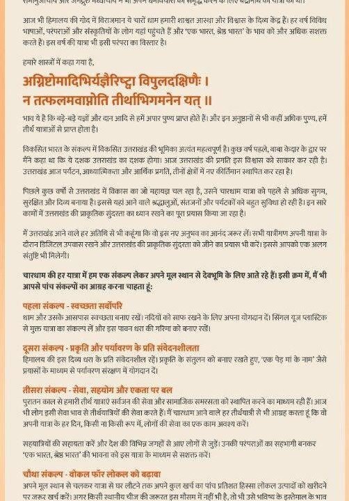 प्रधानमंत्री नरेंद्र मोदी ने चारधाम यात्रा शुरु होने पर देशवासियों को शुभकामना संदेश देते हुए, उत्तराखंड आने वाले तीर्थयात्रियों से...